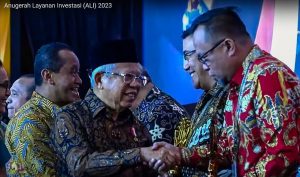 PORTALKAWANUA – Pemerintah Kota Manado kembali meraih prestasi gemilang di tingkat nasional. Kali ini, Kementerian Investasi RI 2023 menyerahkan penghargaan kepada Pemkot Manado sebagai yang terbaik ketiga dalam kategori Kinerja Pelayanan Satu Pintu dan Percepatan Pelaksanaan Berusaha Kategori Kota. Penghargaan tersebut diserahkan langsung oleh Wakil Presiden RI, Prof. Dr. (H.C.) K.H. Ma’ruf Amin, dalam sebuah acara di Hotel Shangri-La Jakarta pada Rabu (08/11/2023).