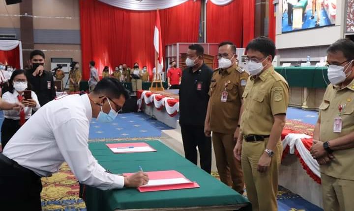 Manado, Portalkawanua.com|| Walikota Andrei Angouw dan Wakil Walikota Manado Richard Sualang hari ini melakukan Pelantikan Ketua Lingkungan (Keling) se Kota Manado di ruang serba guna Pemkot Manado. Selasa (3/8/21)