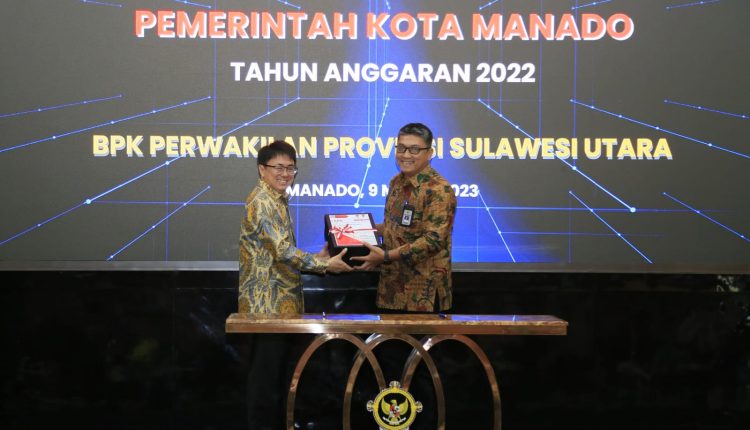PORTAL–Wali Kota Manado Andrei Angouw menghadiri kegiatan penyampaian Laporan Keuangan Pemerintah Daerah (LKPD) Unaudited Kota Manado Tahun Anggaran 2022, bertempat di Kantor Badan Pemeriksa Keuangan (BPK) Perwakilan Provinsi Sulawesi Utara Jalan 17 Agustus Manado.