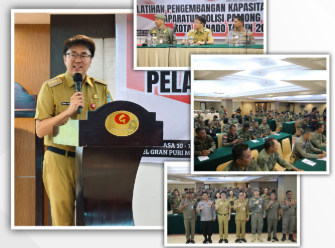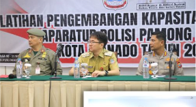 Pelatihan turut diikuti jajaran Satpol PP dan dihadiri Kapolresta Manado Kombes Pol. Irham Halid, S.I.K., Asisten I Pemkot Manado Julises Oehlers, S.H., serta Kepala Satpol PP Kota Manado Drs. Novly Siwy, M.Si.